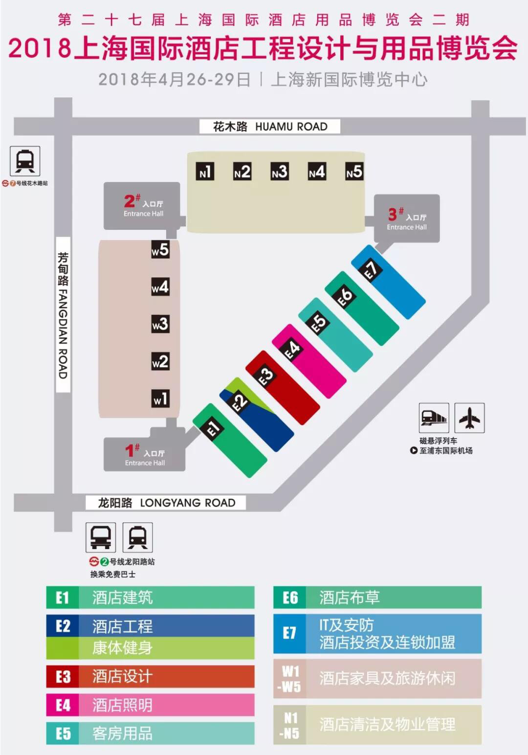 地鐵7號線至花木路站,直達(dá)展館(2#大廳入口)